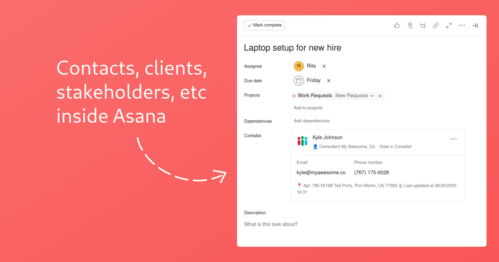 Work with your contacts, clients, stakeholders, etc inside Asana